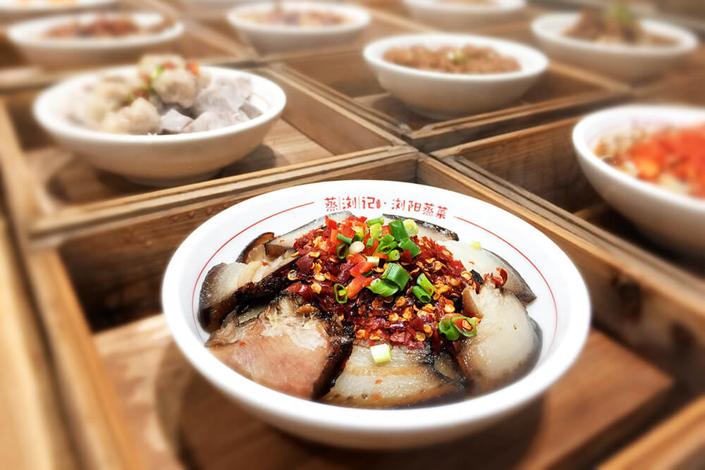 目前市場上,在消費者的心中,最能識別這個餐館是不是瀏陽蒸菜館的地方,非售賣臺莫屬了,傳統瀏陽蒸菜館的售賣臺一般有木質的和竹制的兩種形式,這種蒸籠的保溫方式最大優點是對蒸菜產品品質的保護。蒸菜都是通過蒸汽保溫,如果保溫太過就會導致蒸汽過量而化成湯水進入菜中,使得菜品的湯水過多影響口感,但是傳統大蒸籠就不會有這種情況,因為多余的蒸汽都被竹木材質吸收和縫隙中散發了,不會出現湯汁過多現象,反而大部分菜越蒸越香,越蒸越好吃。