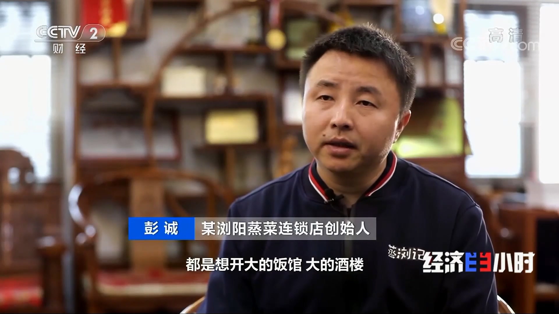事實上,今年2月18日播出的央視《經(jīng)濟半小時》節(jié)目,同樣關(guān)注到了瀏陽蒸菜產(chǎn)業(yè)的發(fā)展。央視記者將鏡頭對準了蒸瀏記,專訪蒸瀏記創(chuàng)始人彭誠,探尋這個湖南省知名品牌不斷取得成功的原因。