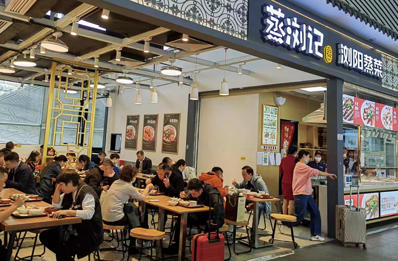 近兩年來,依托自身的品類特點和供應(yīng)鏈優(yōu)勢,蒸瀏記抓住疫情導(dǎo)致旺鋪空出率高的空檔期,主動出擊,快速布局機場、高鐵站和高速服務(wù)區(qū)等區(qū)域交通樞紐。其中,在長沙南站、廣州南站、深圳北站、珠海高鐵站均有多家門店。同時,新增了瀏粉·長沙米粉、聯(lián)四城·蘭州拉面等品類品牌,全方位滿足消費者需求。