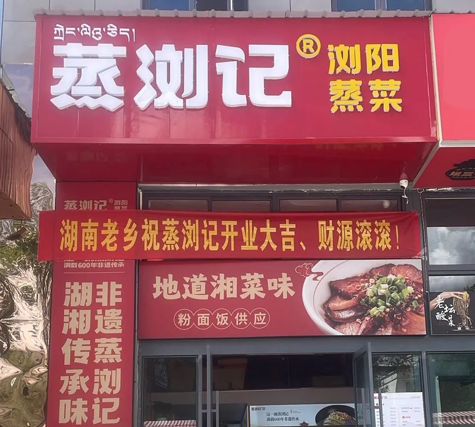 本月初,在西藏旅游的瀏陽人夏傳樹,發現了一家蒸瀏記瀏陽蒸菜,“在西藏吃得最香的一頓飯。”這家從布達拉宮出發車程不過十分鐘的蒸瀏記,是目前距離蒸瀏記本部最遠的門店,試營業至今剛滿月。